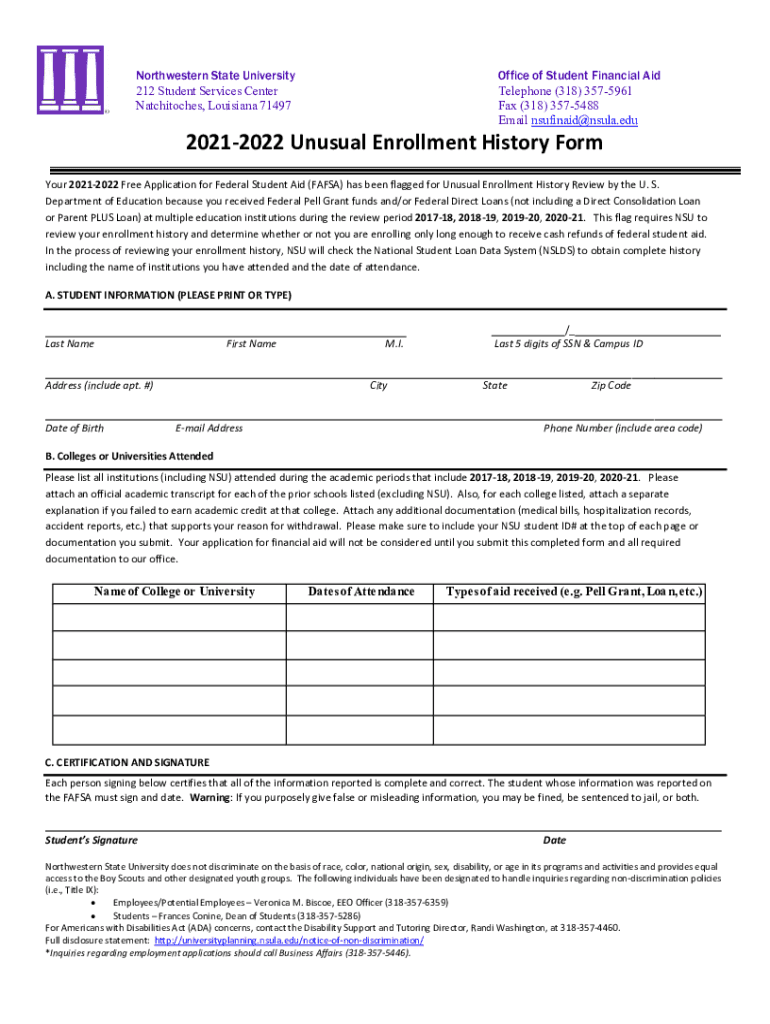 Get the free Financial Aid Forms - Northwestern State University