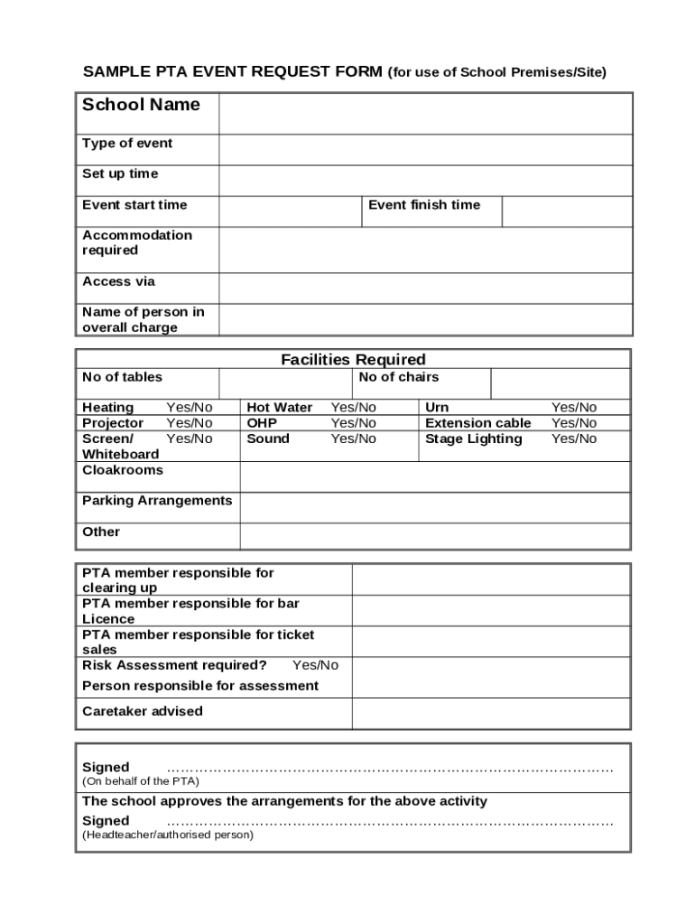 Template Sample PTA Event Request . Schools Financial Services instructions