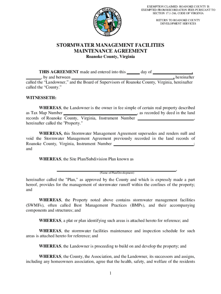 EXEMPTION CLAIMED: ROANOKE COUNTY IS EXEMPTED FROM DECORATION FEES PURSUANT TO SECTION 17.1266, CODE OF VIRGINIA RETURN TO ROANOKE COUNTY DEVELOPMENT SERVICESSTORMWATER MANAGEMENT FACILITIES MAINTENANCE