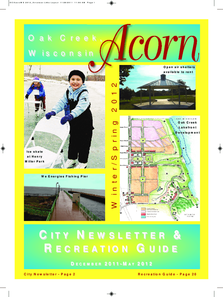 Acorns 2012_American Lithe Layout 11/29/2011 11:06 AM Page 1Oak Creek, Wisconsinite skates at Henry Miller Park Energies Fishing Overwinter/Spring 2012Open air shelters available to rental Creek Lakefront