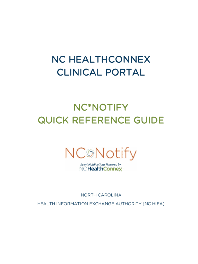 NC HEALTHCONNEX CLINICAL PORTAL NC×NOTIFY QUICK REFERENCE GUIDEPOST CAROLINA HEALTH INFORMATION EXCHANGE AUTHORITY (NC IEA)2ACCESSING NC×NOTIFY IN THE NC HEALTHCONNEX CLINICAL PORTAL Full participants