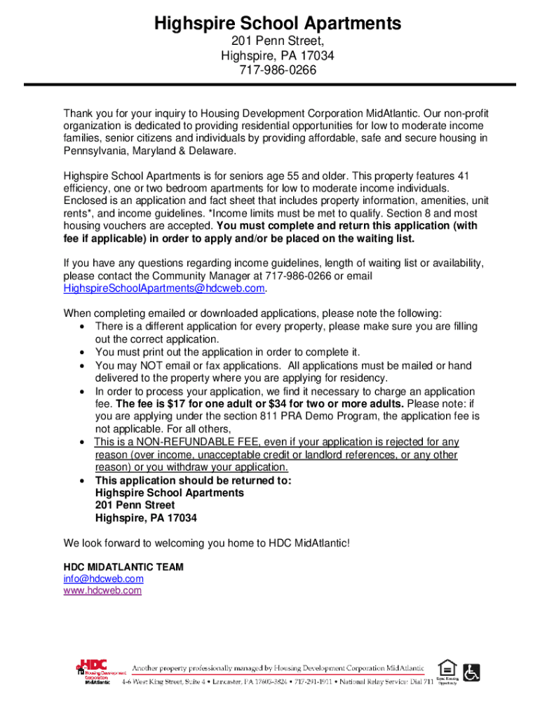High spire School Apartments 201 Penn Street, High spire, PA 17034 7179860266Thank you for your inquiry to Housing Development Corporation mid-Atlantic. Our nonprofit organization is dedicated to