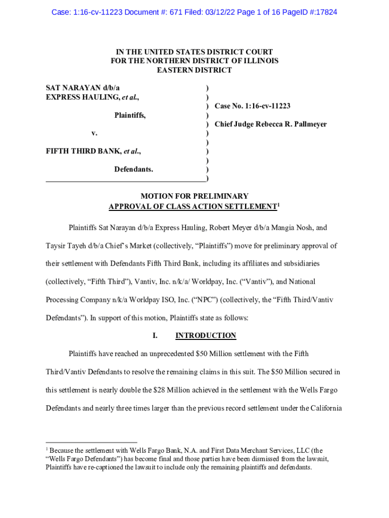 Case: 1:16cv11223 Document #: 671 Filed: 03/12/22-Page 1 of 16 Paged #:17824IN THE UNITED STATES DISTRICT COURT FOR THE NORTHERN DISTRICT OF ILLINOIS EASTERN DISTRICT SAT NARAYANA d/b/a EXPRESS HAULING,