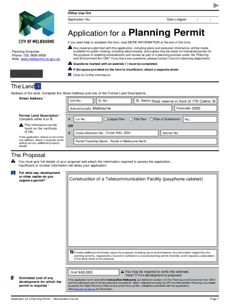 Office Use On Application No.:Date Lodged:Application for a Planning//Permit you need help to complete this form, read MORE INFORMATION at the end of this form. Any material submitted with this application,