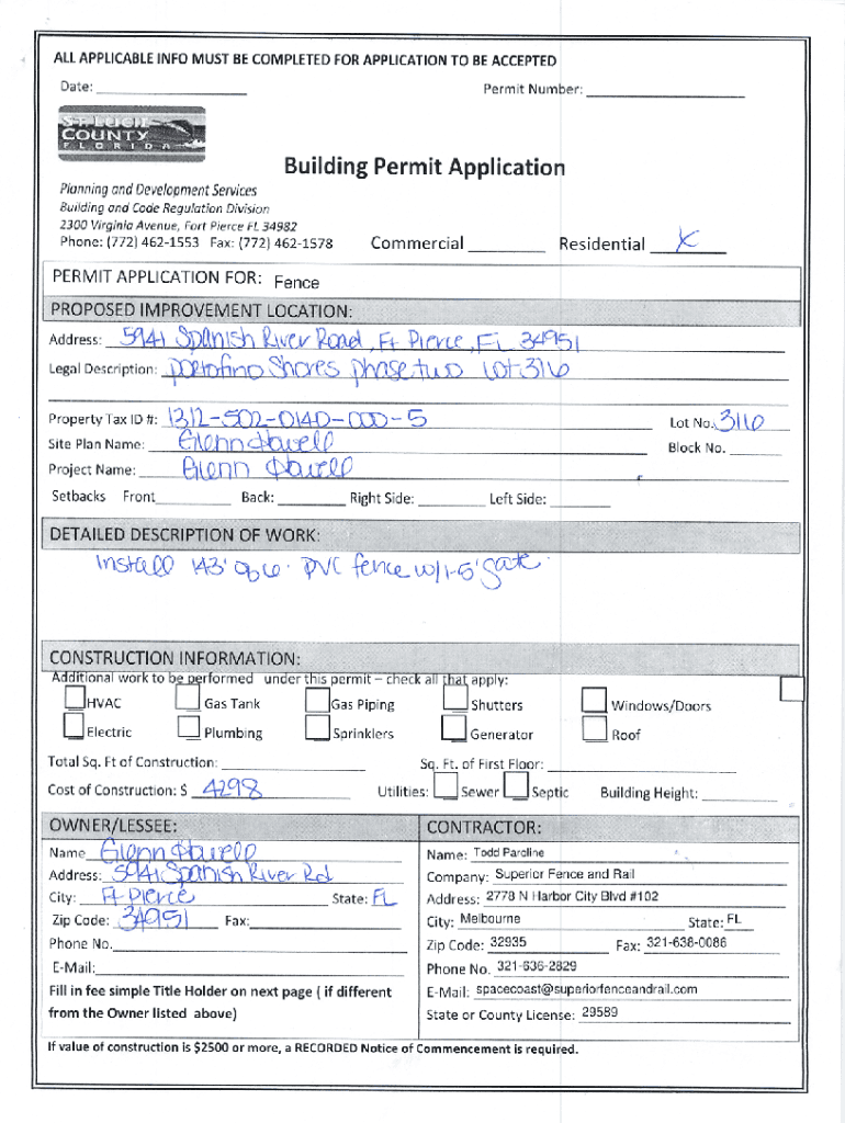 ALL APPLICABLE INFO MUST BE COMPLETED FOR APPLICATION TO BE ACCEPTED Date:_Permit Number:_Building Permit Application Planning and Development Services Building and Made Regulation Division 2300 Virginia