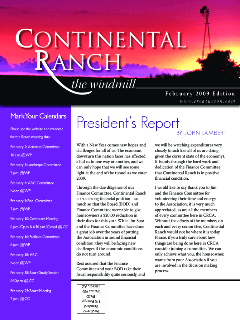 Continental anchorage windmillFebruar y 2009 Edition w w w.CRC ATC son.comMarkYour Calendars Please see the website and marqueePresidents Report JOHN LA M B ERT for the Board meeting date. February