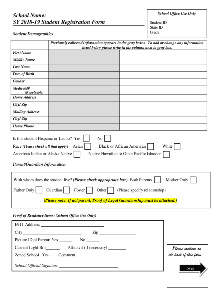 School Office Use Playschool Name: SY 201819 Student Registration FormStudent ID State ID GradeStudent DemographicsPreviously collected information appears in the gray boxes. To add or change any