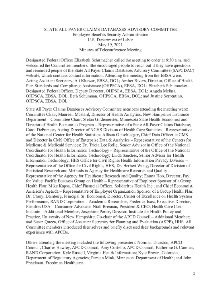 Get the free State All Payer Claims Databases Advisory CommitteeState All Payer Claims Databases ...