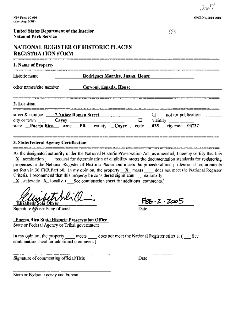 NFS Form 10900 (Rev. Aug. 2002)OMB No. 10240018United States Department of the Interior National Park ServiceNATIONAL REGISTER OF HISTORIC PLACES REGISTRATION FORM 1. Name of Property historic name___Rodriguez