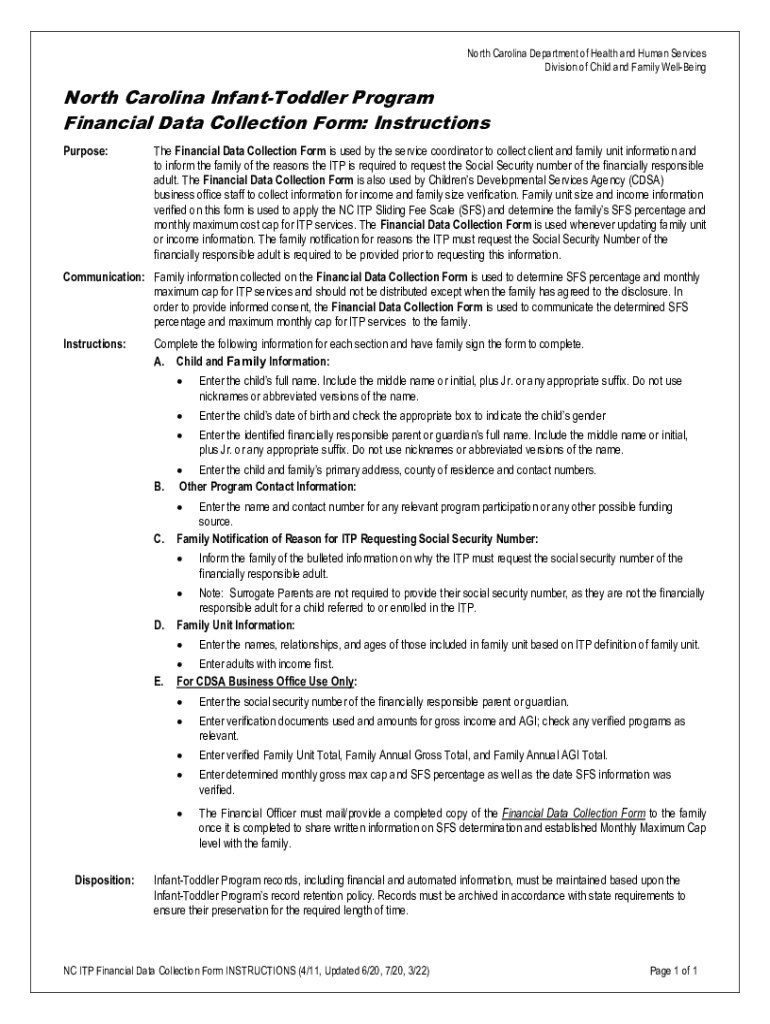 North Carolina Department of Health and Human Services Division of Child and Family WellBeingNorth Carolina InfantToddler Program Financial Data Collection Form: Instructions Purpose:The Financial