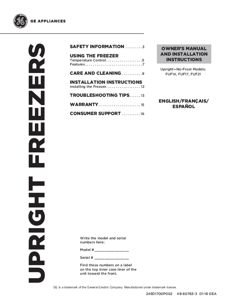 Get the free Online UPRIGHT FREEZERS - All GE Appliances Products Fax Email ...