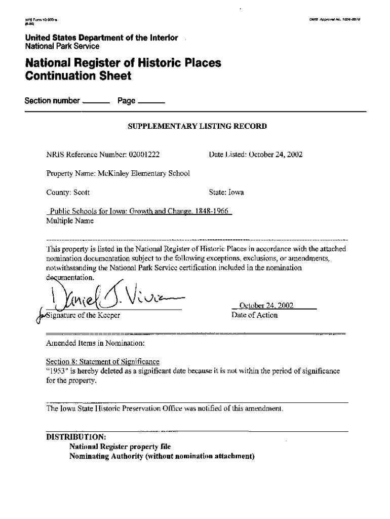 NPS Form 10900aOMB Approval No. 10244018United States Department of the Interior National Park ServiceNational Register of Historic Places Continuation Sheet Section number Page SUPPLEMENTARY LISTING