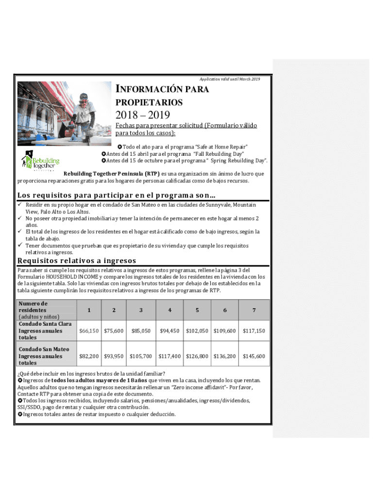 Application valid until March 2019INFORMACIN PARA PROPIETARIOS2018 2019 Fuchs para presenter solicited (Formulation lido para to-dos Los cases):To-do el AO para El program Safe at Home Repair Antes