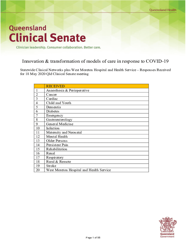 Get the free Innovative models of care submissionsQueensland Clinical Senate. Innovative models o...