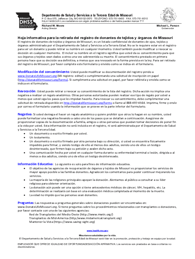 Department ode Salad y Services à la Terceira Dad de MissouriP. O. Box 570, Jefferson City, MO 651020570 BELONG: 5737516400 FAX: 5737516010 RELAY MISSOURI Los ciudadanos con Alan problem auditive