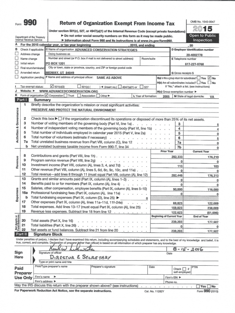 Form990OMB No. 15450047Return of Organization Exempt From Income Tax2015Under section 501(c), 527, or 4947(a)(1) of the Internal Revenue Code (except private foundations)Ado not enter social security