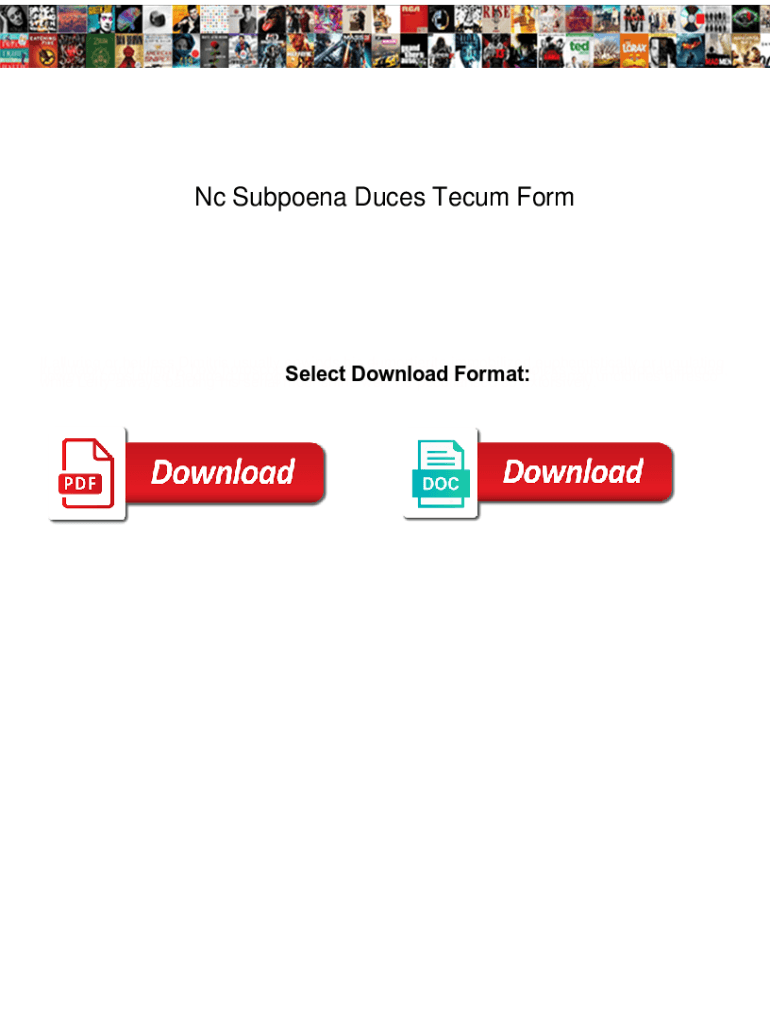Get the free Nc Subpoena Duces Tecum Form. Nc Subpoena Duces Tecum Form ensures