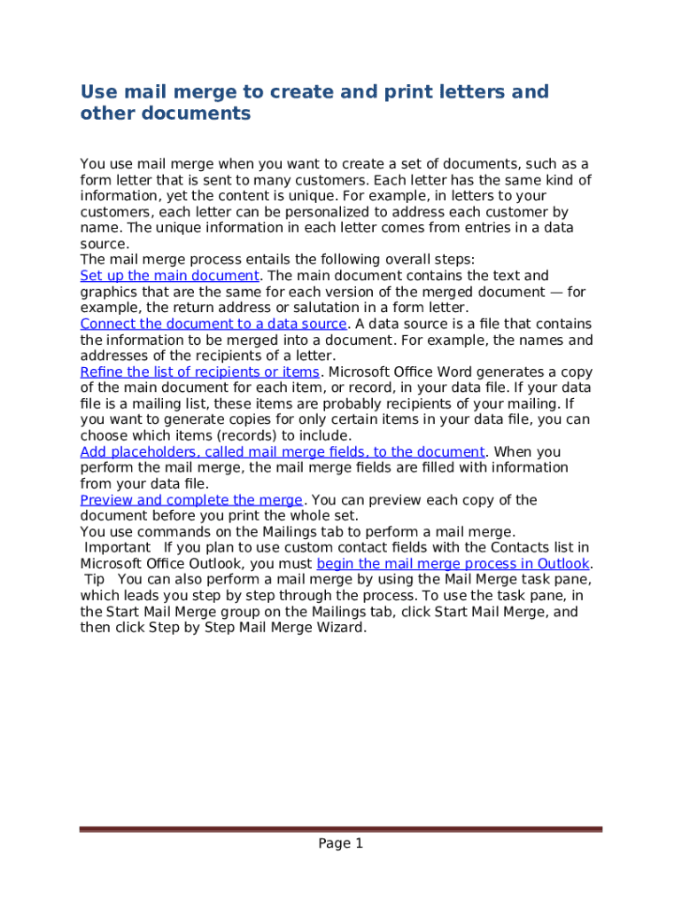 How to fill out How to use the Mail Merge feature in Word to create and to print ...