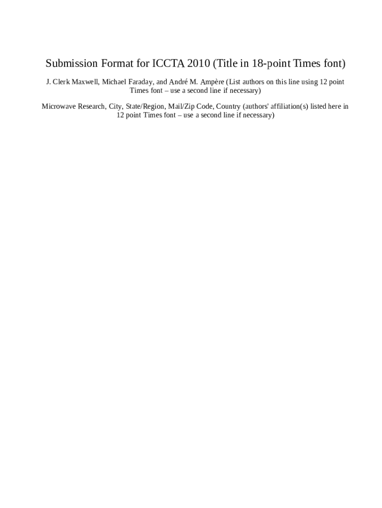 Submission at For IMS2004 (Title in 18-Point Times Font) word template: frequently asked questions