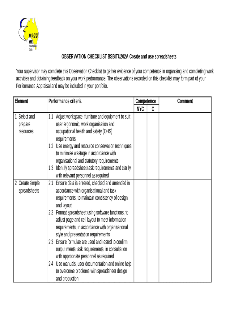 BSBITU202A - Create and use spreadsheets assessment tool template instructions