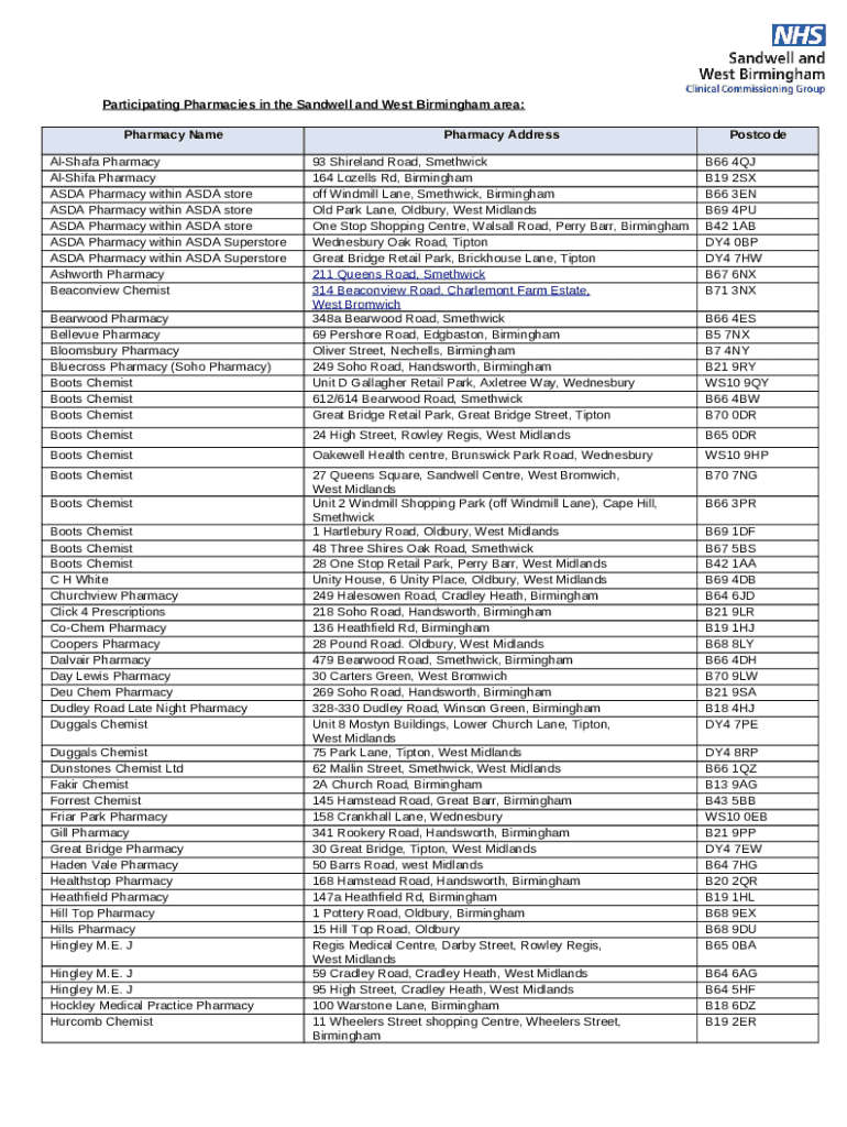 Instructions for the www.npn.org.ukpharmaciessandwell-pharmacy-85Sandwell Pharmacy, 85 Church Vale, West Bromwich, Birmingham ... form