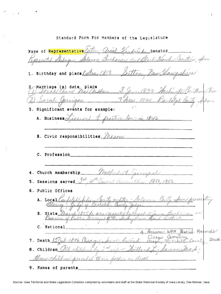 Standard For m For He mb4rl of N\'an e of Representative ;\'; :.;\”.\”, with L9slatureClu4lX\'/A;;. J. Sent o r _ _ __ d, /j :;. ., 7. / d/, / /\' :f;;:v. 11., .1. Birthday and place Mud 1i/3for