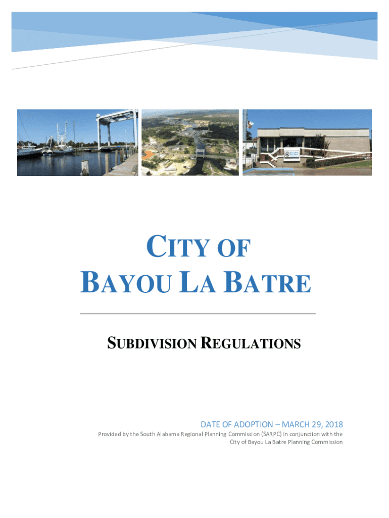 CITY OF BAYOU LA BARE SUBDIVISION REGULATIONSDATE OF ADOPTION MARCH 29, 2018, Provided by the South Alabama Regional Planning Commission (SA RPC) in conjunction with the City of Bayou La Bare Planning