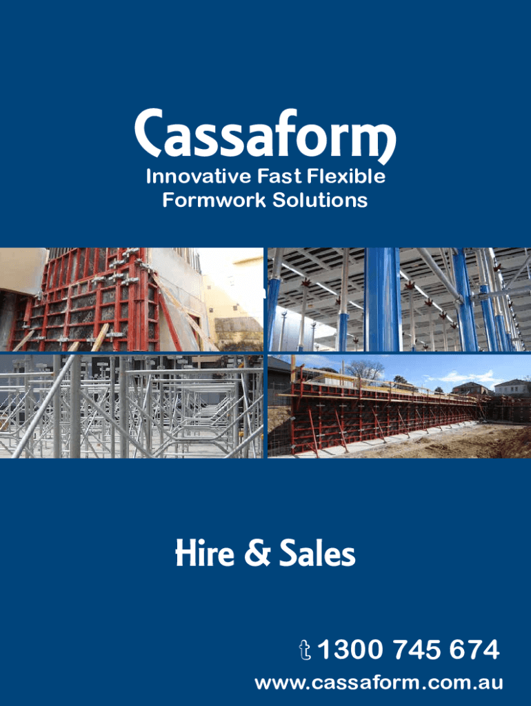 Cassandra Innovative Fast Flexible Form work Solutions.cassaform.com.ashore & Sales t 1300 745 674 www.cassaform.com.auA ONE-STOP SHOP FOR INNOVATIVE, FAST & FLEXIBLE FOREWORD AND PROPPING SOLUTIONS.