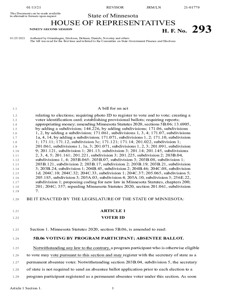 01/13/21 REVISORThis Document can be made available in alternative formats upon requester/LN2101779State of MinnesotaHOUSE OF REPRESENTATIVES NINETYSECOND SESSION 01/25/2021H. F. No. Authored by Copenhagen,