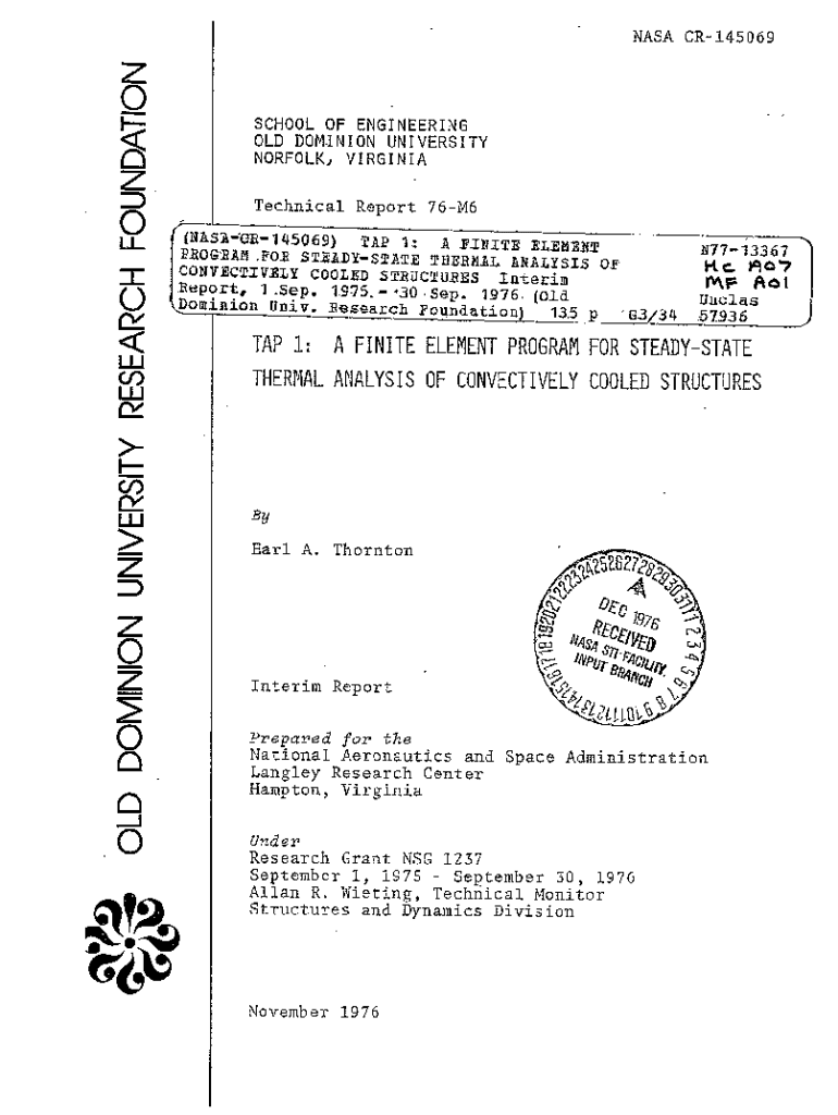 NASA CR1450692 0 SCHOOL OF ENGINEERING DOMINION UNIVERSITY NORFOLK, VIRGINIA__ZD\” 0Technical Report 76M6W People l OB ShAflySTATx S A WR_0 p 9 13:e 0 THE S p An, 19 ANALYSIS 6 OF CONVECTIVE LY