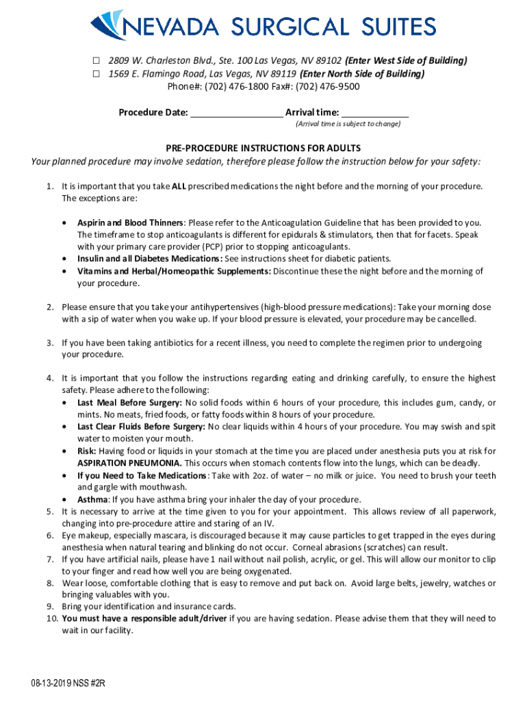How to fill out nevadasurgicalsuitescom wp-content uploadspre-procedure instructions