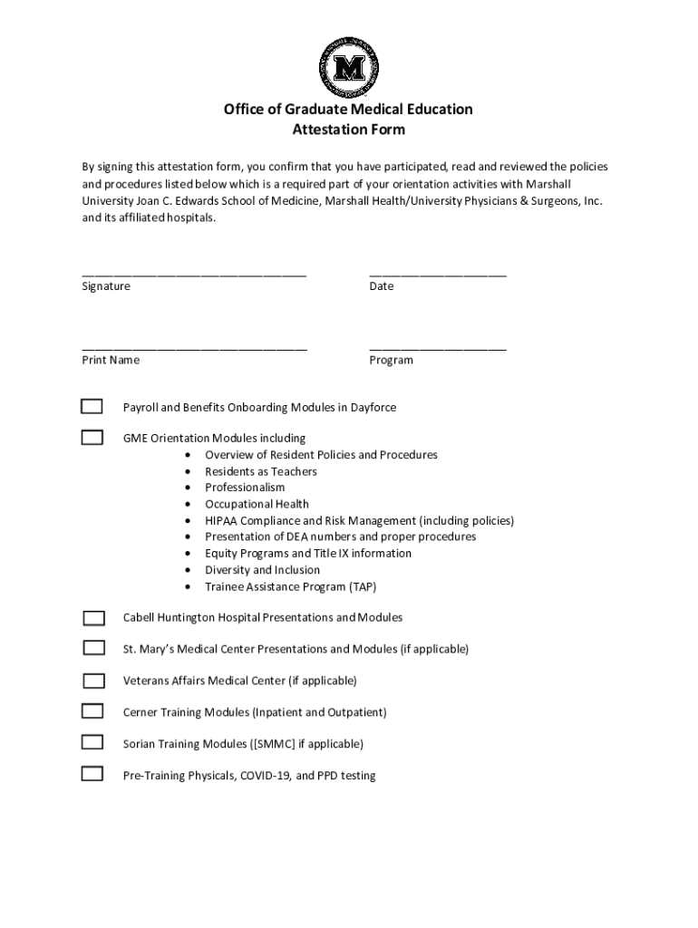 Office of Graduate Medical Education Attestation Form By signing this attestation form, you confirm that you have participated, read and reviewed the policies and procedures listed below which is