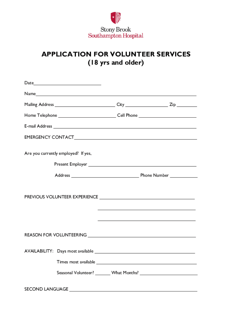 Get the free southampton.stonybrookmedicine.edu sites defaultAPPLICATION FOR VOLUNTEER SERVICES (...