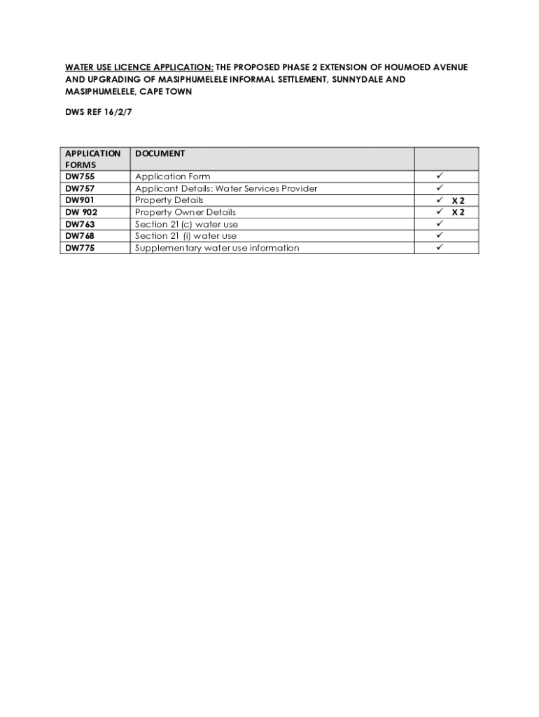 WATER USE License APPLICATION: THE PROPOSED PHASE 2 EXTENSION OF HOUSED AVENUE AND UPGRADING OF MASIPHUMELELE INFORMAL SETTLEMENT, SUNNYVALE AND MASIPHUMELELE, CAPE TOWN DNS REF 16/2/7APPLICATION