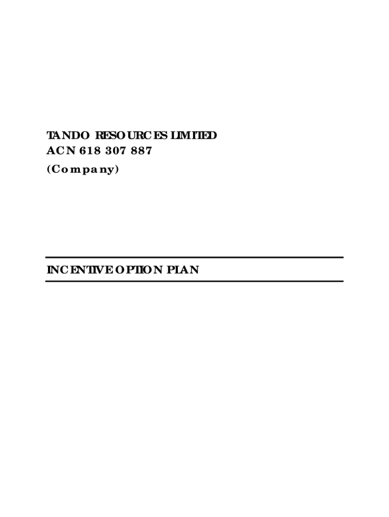 TANGO RESOURCES LIMITED ACN 618 307 887 (Company)INCENTIVE OPTION PLAYABLE OF CONTENTS 1.DEFINITIONS AND INTERPRETATION .............................................................................