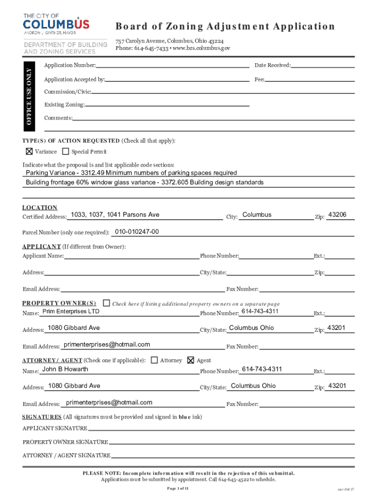 The formmetropreneurcomcolumbuswp-contentboard of zoning adjustment is a document used to request variances, special permits, or other zoning changes for properties in Columbus.