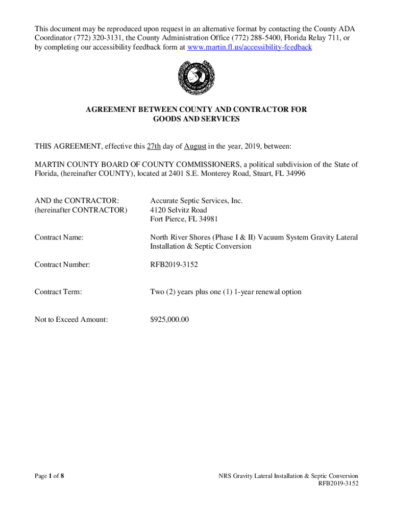 This document may be reproduced upon request in an alternative format by contacting the County ADA Coordinator (772) 3203131, the County Administration Office (772) 2885400, Florida Relay 711, or
