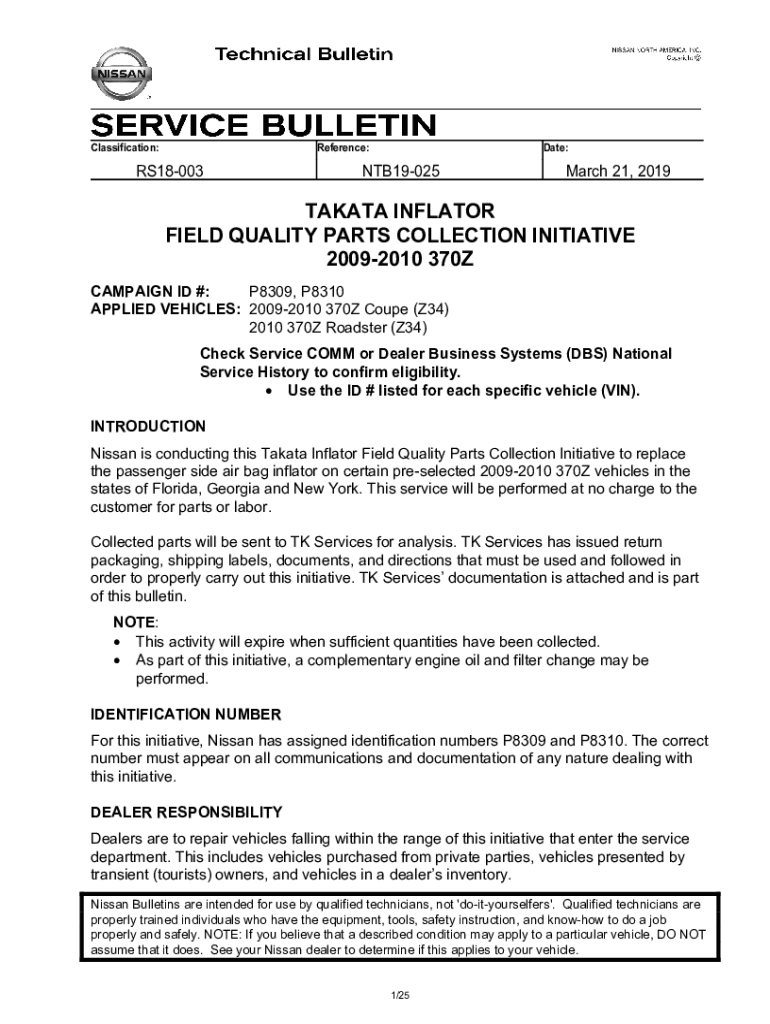 How to fill out ntb19-025 nissan technical service