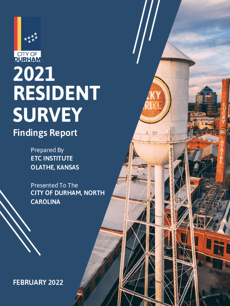 2021 RESIDENT SURVEY Findings Report Prepared By ETC INSTITUTE OLATHE, KANSAS Presented To The CITY OF DURHAM, NORTH CAROLINAFEBRUARY 2022Table of Contents Section 1: page i Section 2: page 1Executive