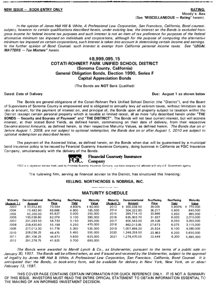 Lllllll,1,dl1111Httllji.IL............’t.___......................_;., ...RATING Moody\'s: AAA (See \” MISCELLANEOUS Rating\” herein).1NEWiSUE _COVENTRY Only the opk1ion of Jones Hall Hill &