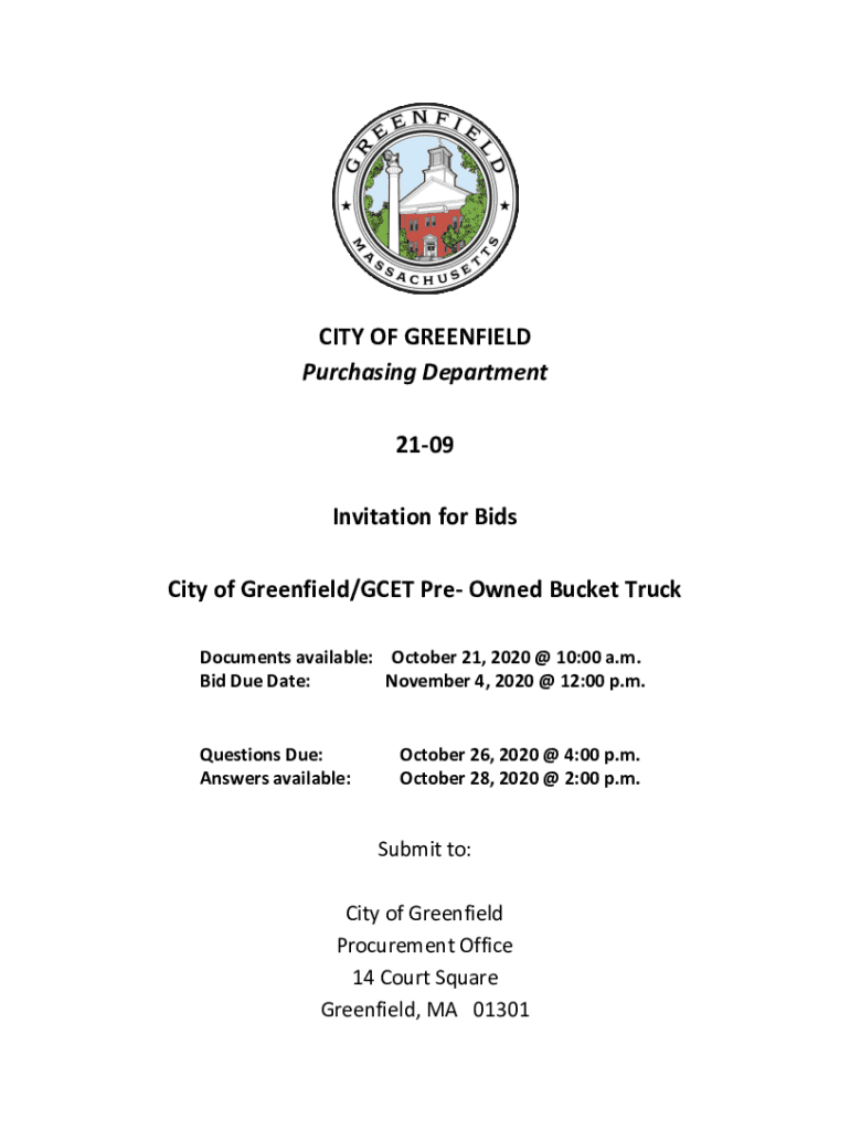 Get the free greenfield-ma.govfilesIFB21-09GCETPre-OwnedPurchasing Department - greenfield-ma.gov