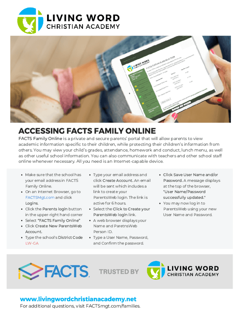 ACCESSING FACTS FAMILY ONLINE FACTS Family Online is a private and secure parents' portal that will allow parents to view academic information specific to their children, while protecting their children's