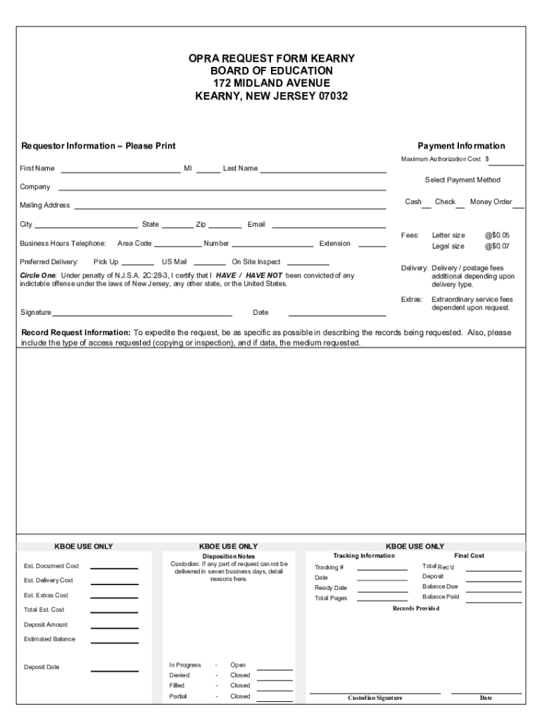 Get the free nj02202734.schoolwires.netcmslibOPRA REQUEST FORM KEARNY BOARD OF EDUCATION 100 DAVI...