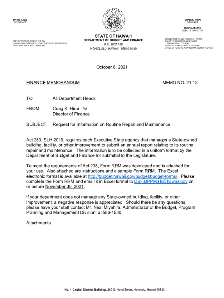 Get the free Finance Memorandum No. 21-13. Request for Information on Routine Repair and Maintenance