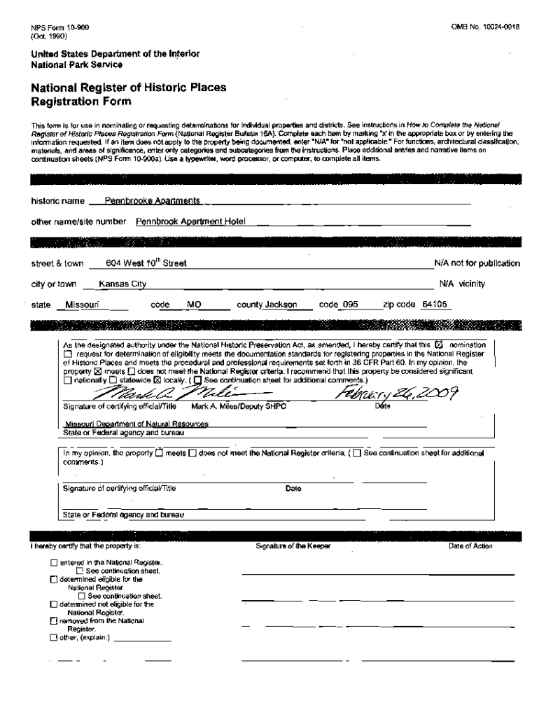 NPS Form 10900(od1990)United States Department of the Interior National Park ServiceNational Register of Historic Places Registration Form This form is for use In nominating or requesting determinations