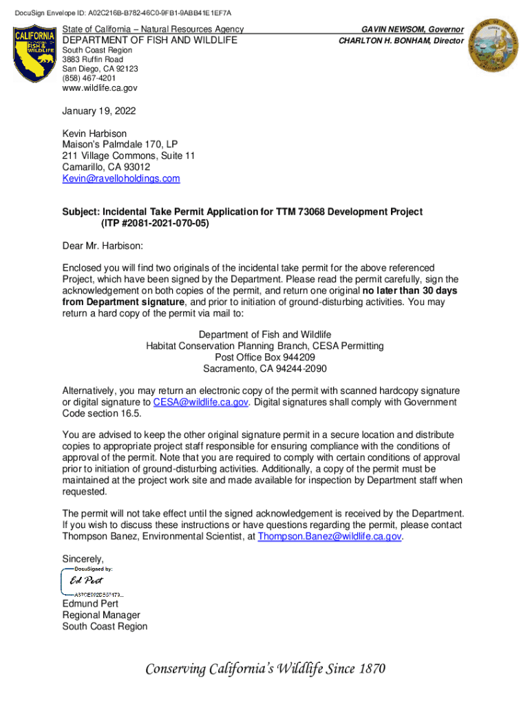 DocuSign Envelope ID: A02C216BB78246C09FB19ABB41E1EF7A 339011F2B4CF47A8B82AA6E4EE52CDE2State of California Natural Resources AgencyDEPARTMENT OF FISH AND WILDLIFEGAVIN NEWSOM, Governor CHARLTON H.