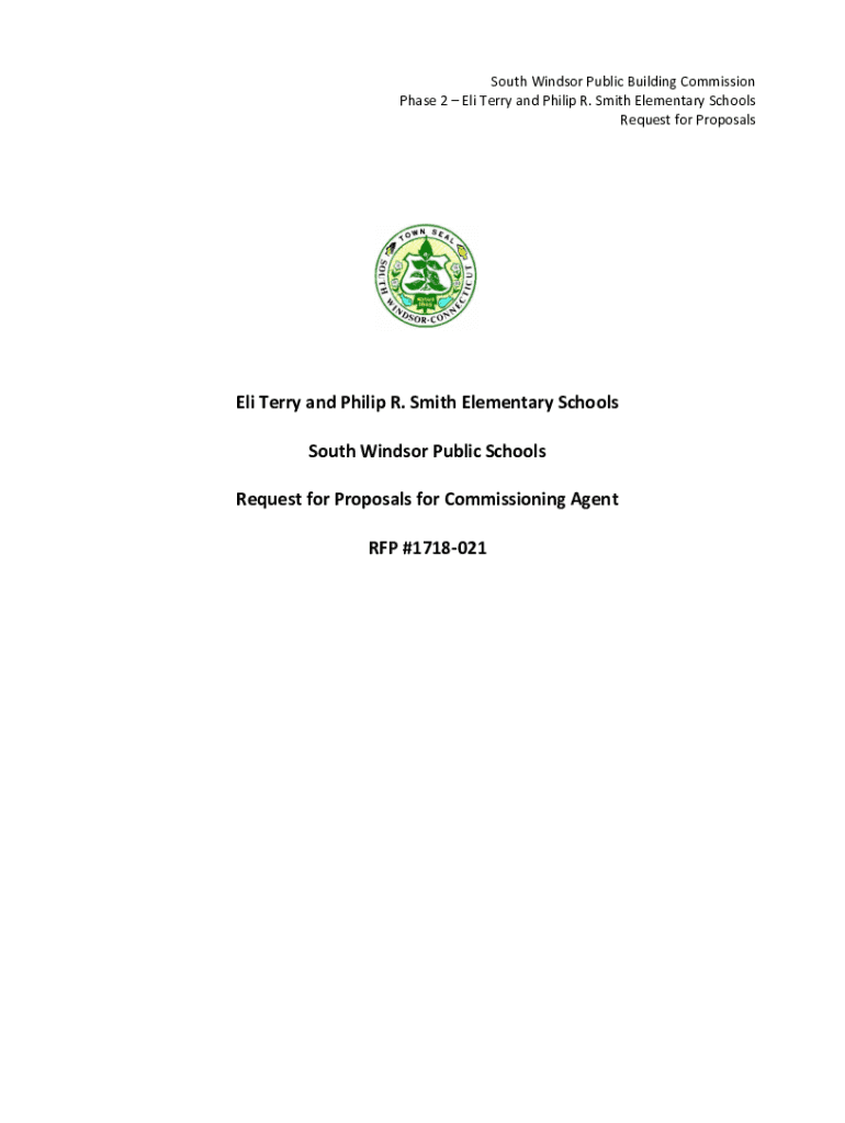 South Windsor Public Building Commission Phase 2 Eli Terry and Philip R. Smith Elementary Schools Request for Proposals Eli Terry and Philip R. Smith Elementary Schools South Windsor Public Schools