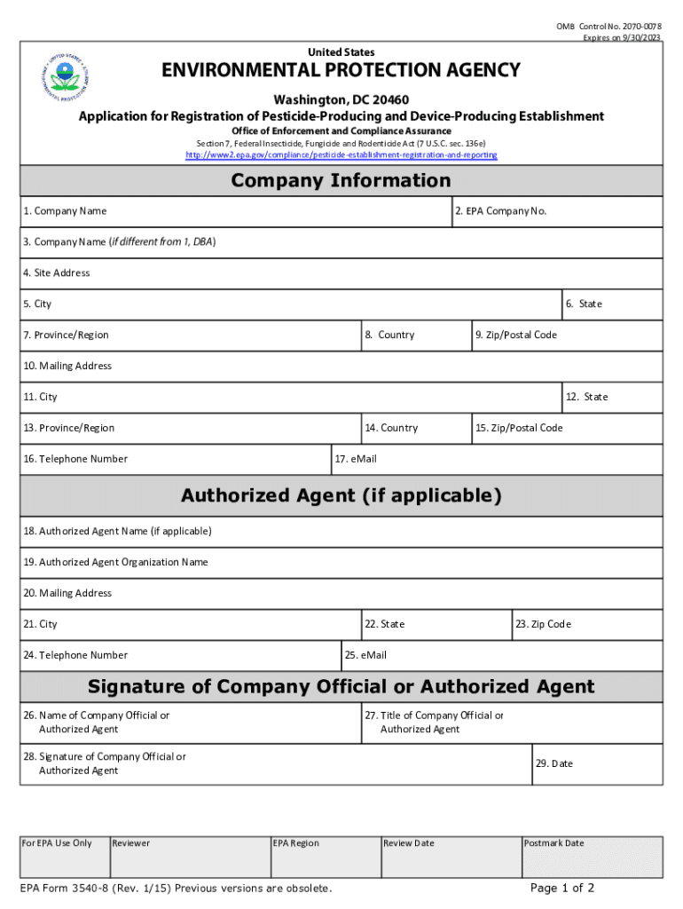 Make sure to provide all the required details, such as your business name, address, contact person, pesticide products you manufacture or distribute, etc.