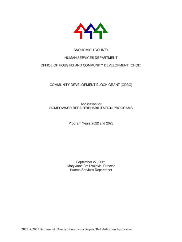 SNOHOMISH COUNTY HUMAN SERVICES DEPARTMENT OFFICE OF HOUSING AND COMMUNITY DEVELOPMENT (OCD)COMMUNITY DEVELOPMENT BLOCK GRANT (CBG)Application for HOMEOWNER REPAIR/REHABILITATION PROGRAMSProgram Years