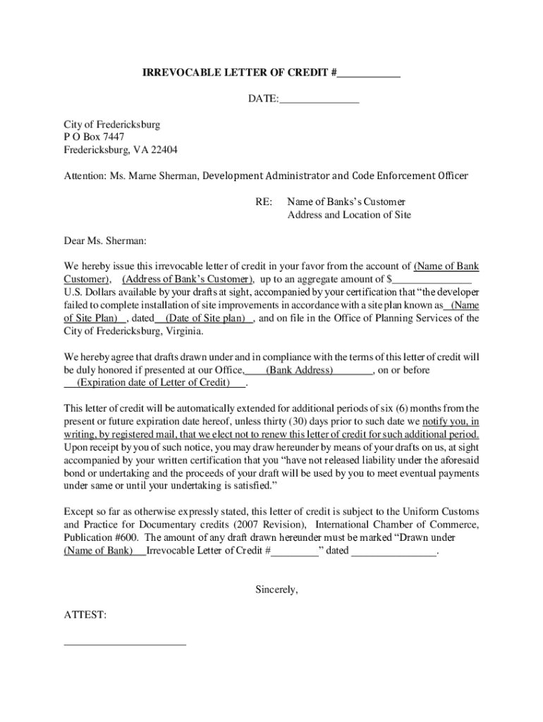 Get the free letter of credit sample.doc - CITY OF FREDERICK IRREVOCABLE LETTER OF ...